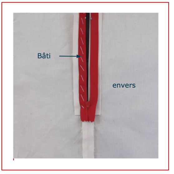 - Bâtir le zip sur le rentré de couture uniquement.