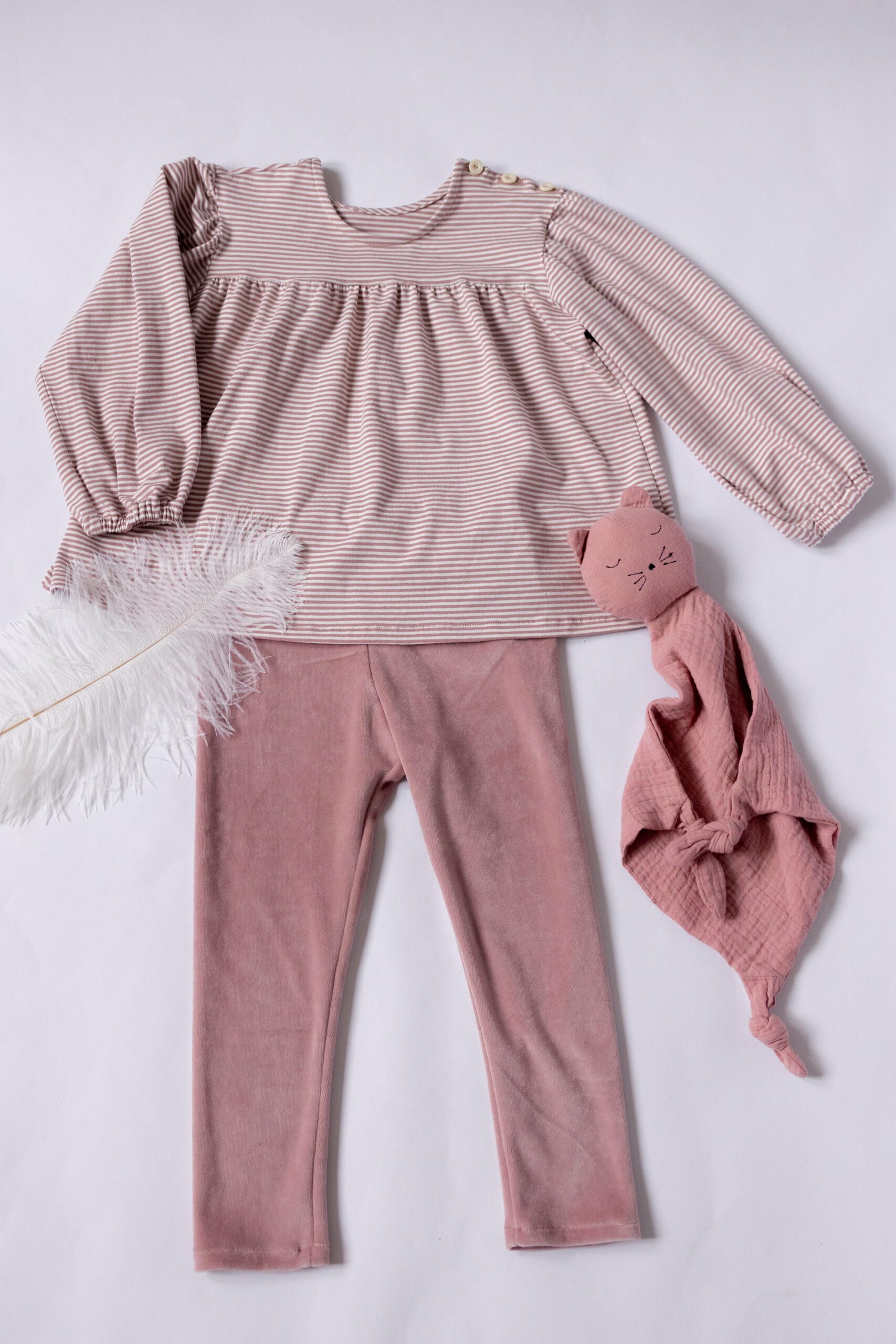 - Bas : Jersey velours rose antique (80% coton, 20% polyester) pour un bas confortable et velouté.