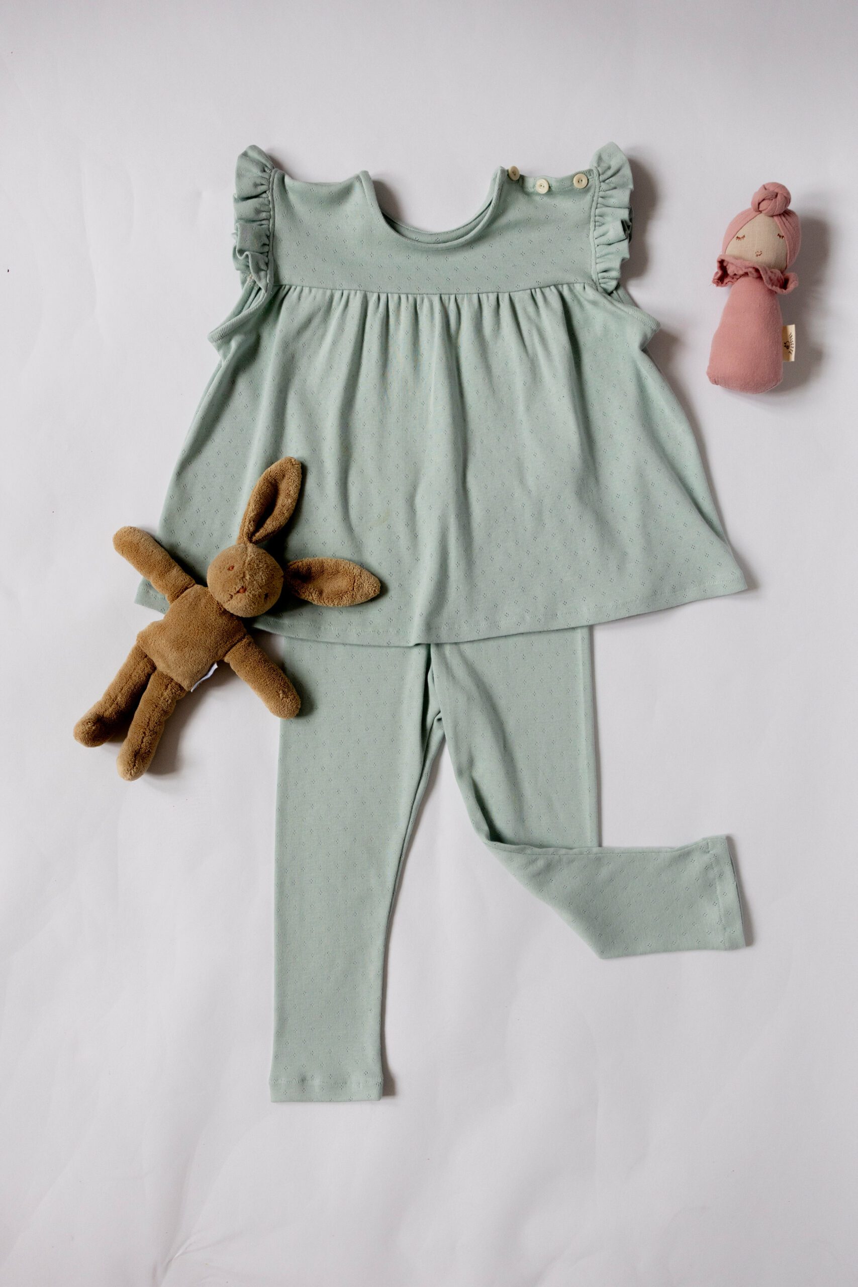 - Bas : Jersey velours vert céladon (80% coton, 20% polyester) pour des nuits bien au chaud.