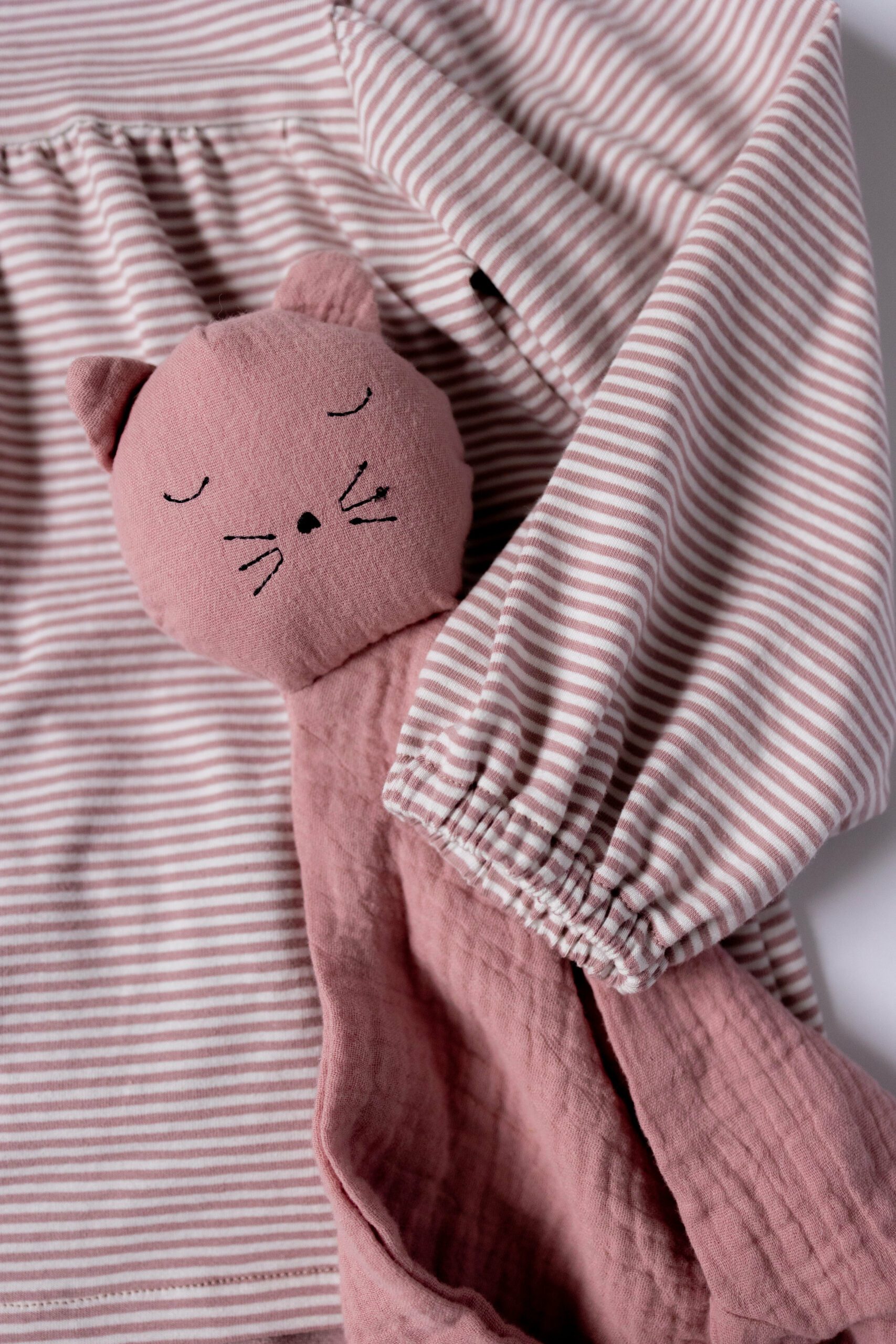 - Haut et Bas : Jersey pointelle rose antique (100% coton) pour un pyjama élégant et aéré, offrant douceur et confort.