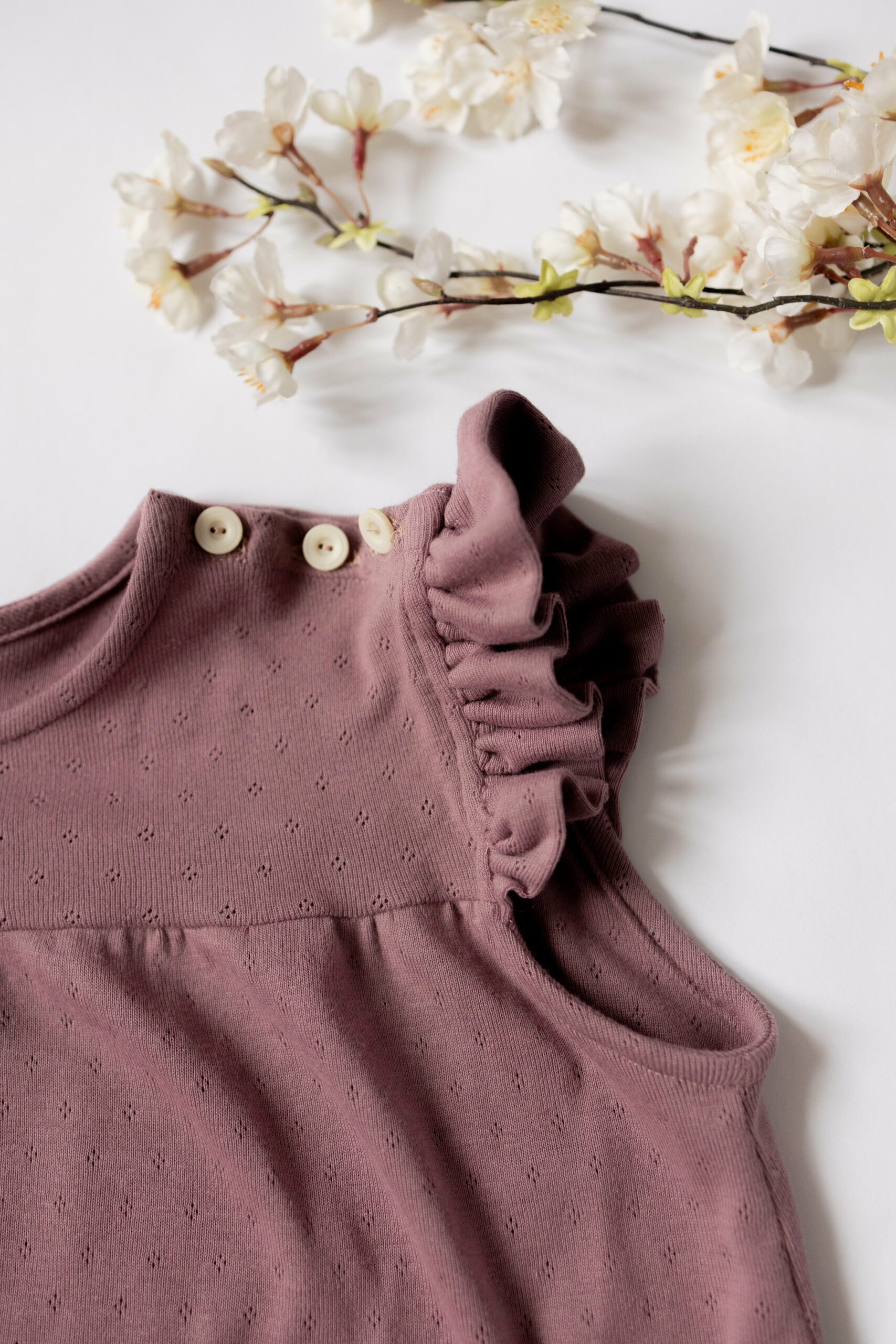 - Sans manches avec un joli volant, idéal pour les températures plus chaudes.