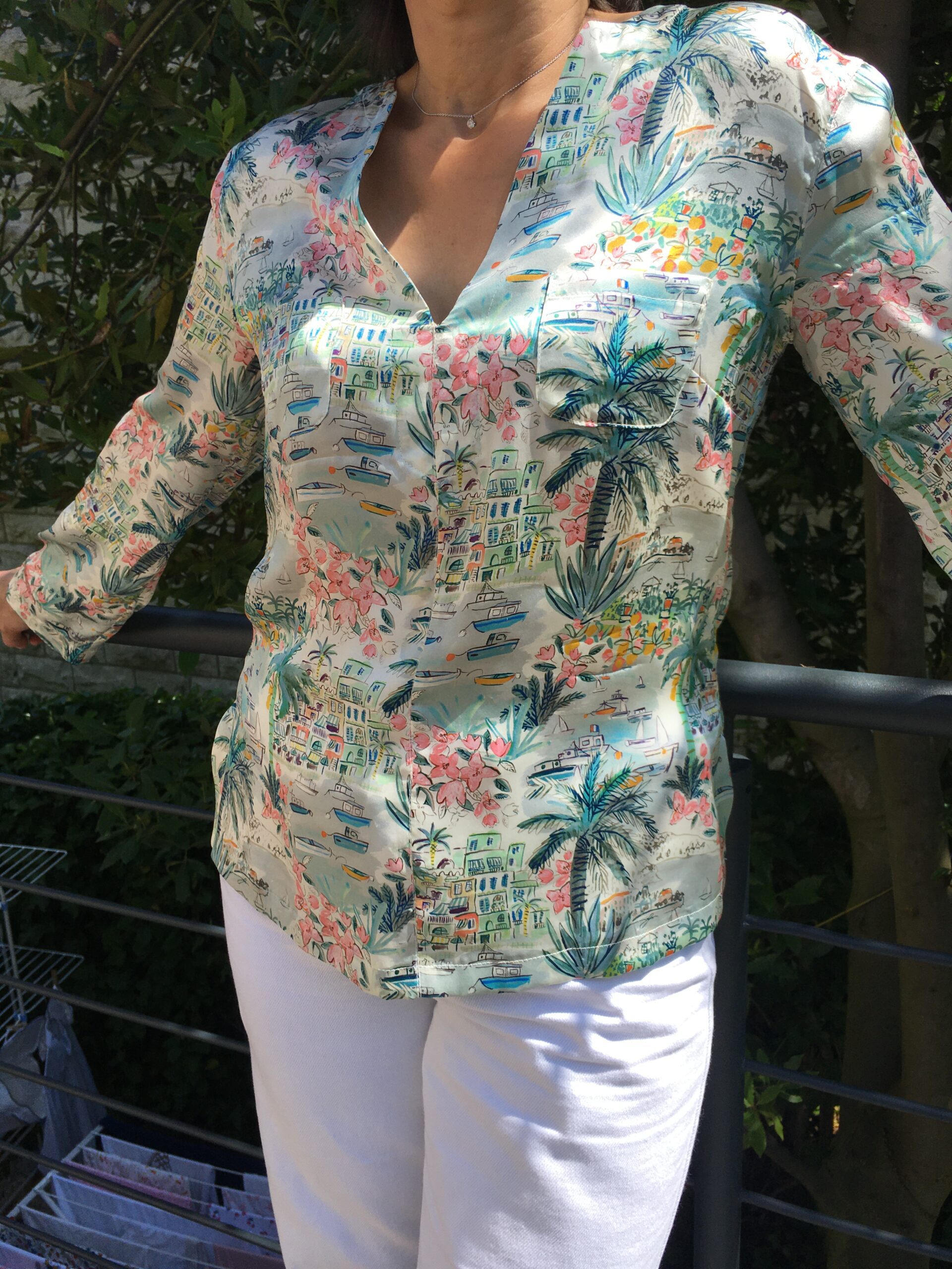 Sur le liberty de soie, on vous propose des finitions de surpiqûres tons sur tons.