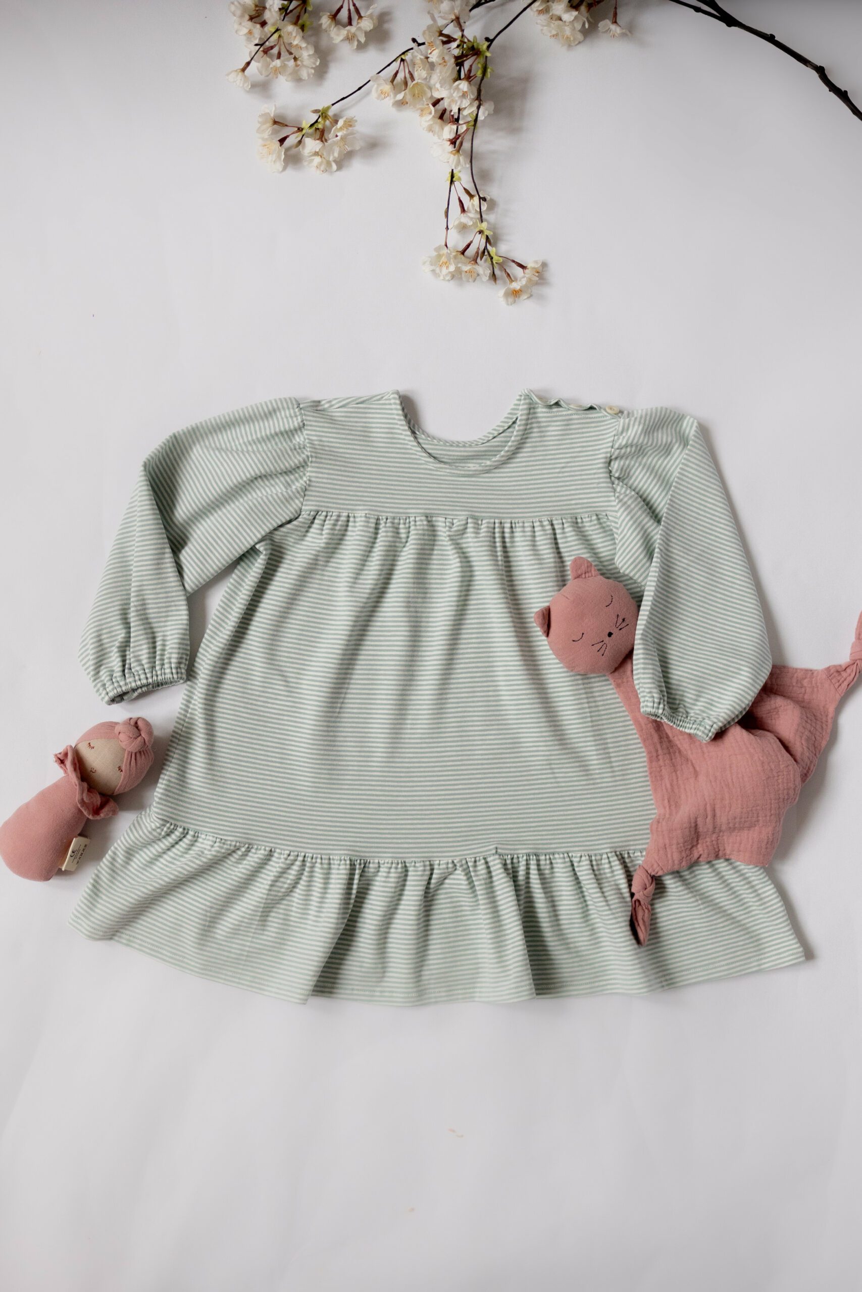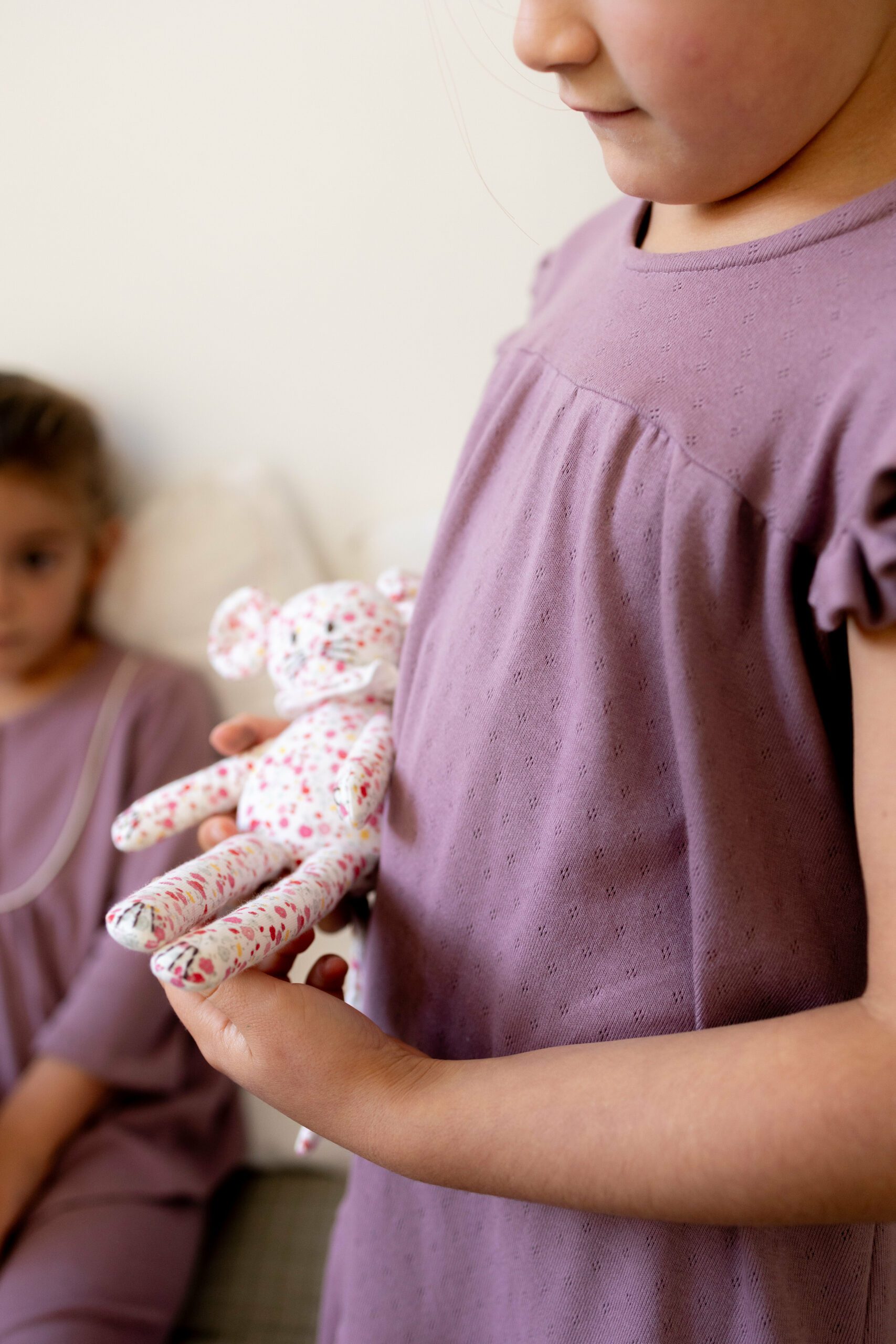 Alba est un patron de couture adaptable et charmant conçu pour réaliser des chemises de nuit et des pyjamas pour enfants.