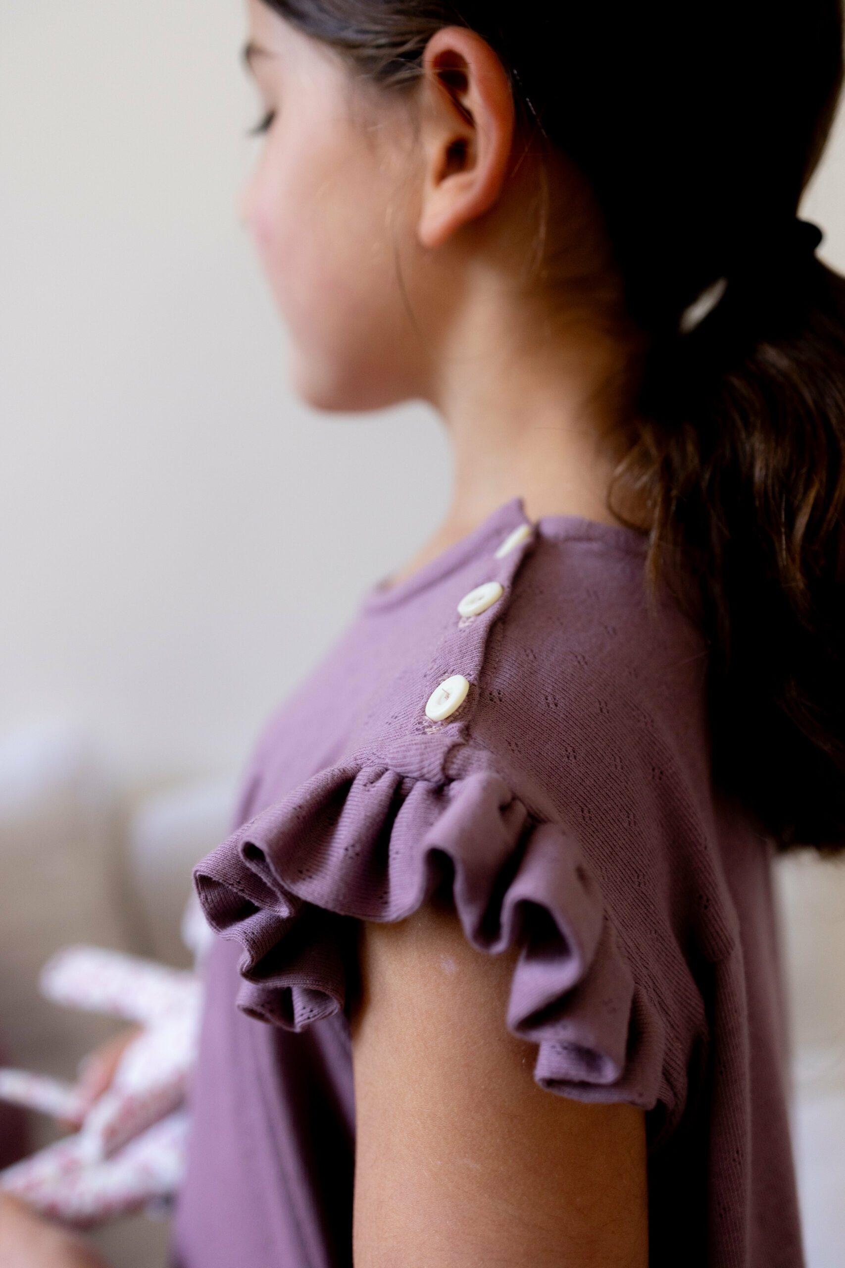 La chemise de nuit se distingue par un grand volant au bas qui ajoute du mouvement. Elle est parfaite pour les petites filles qui aiment le style fluide et aérien.