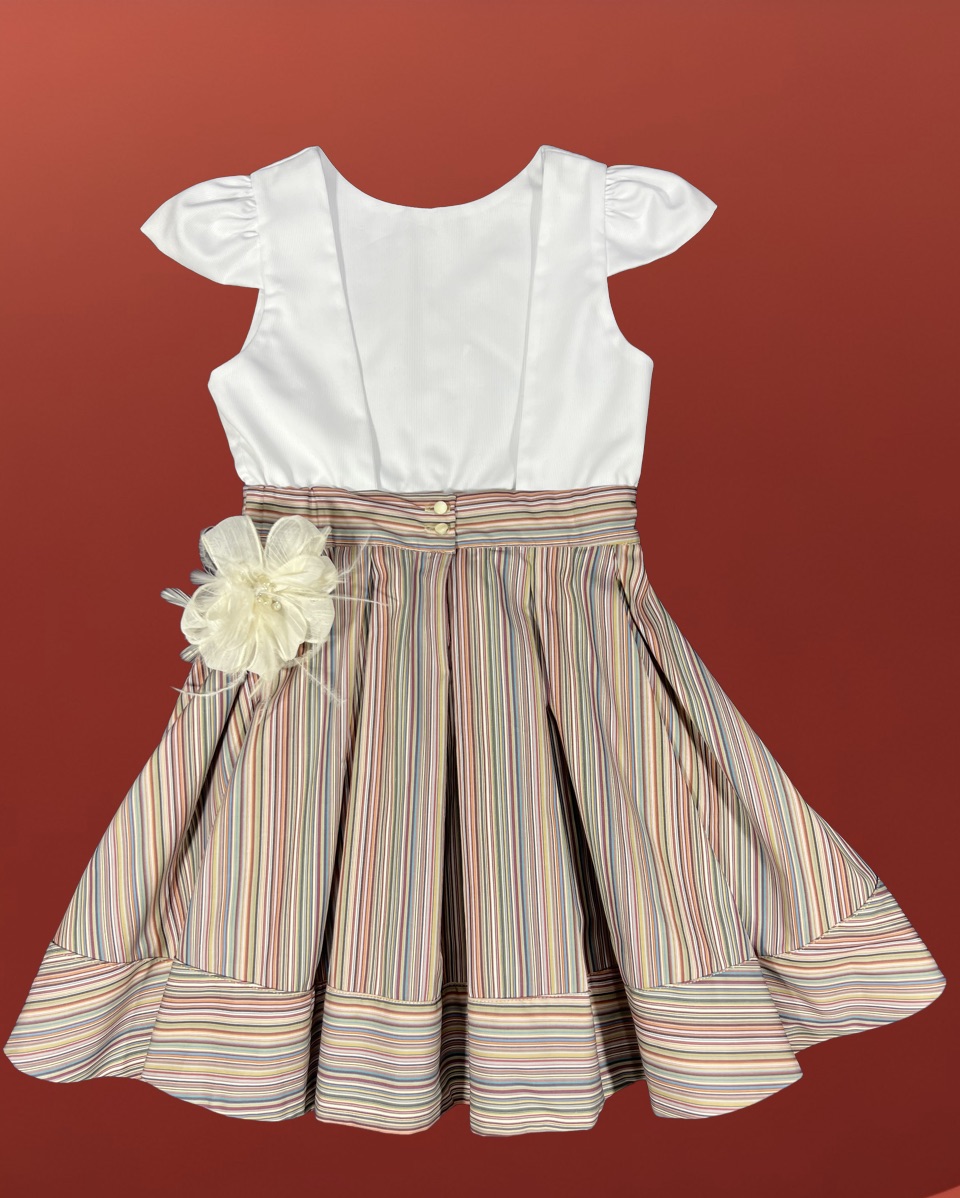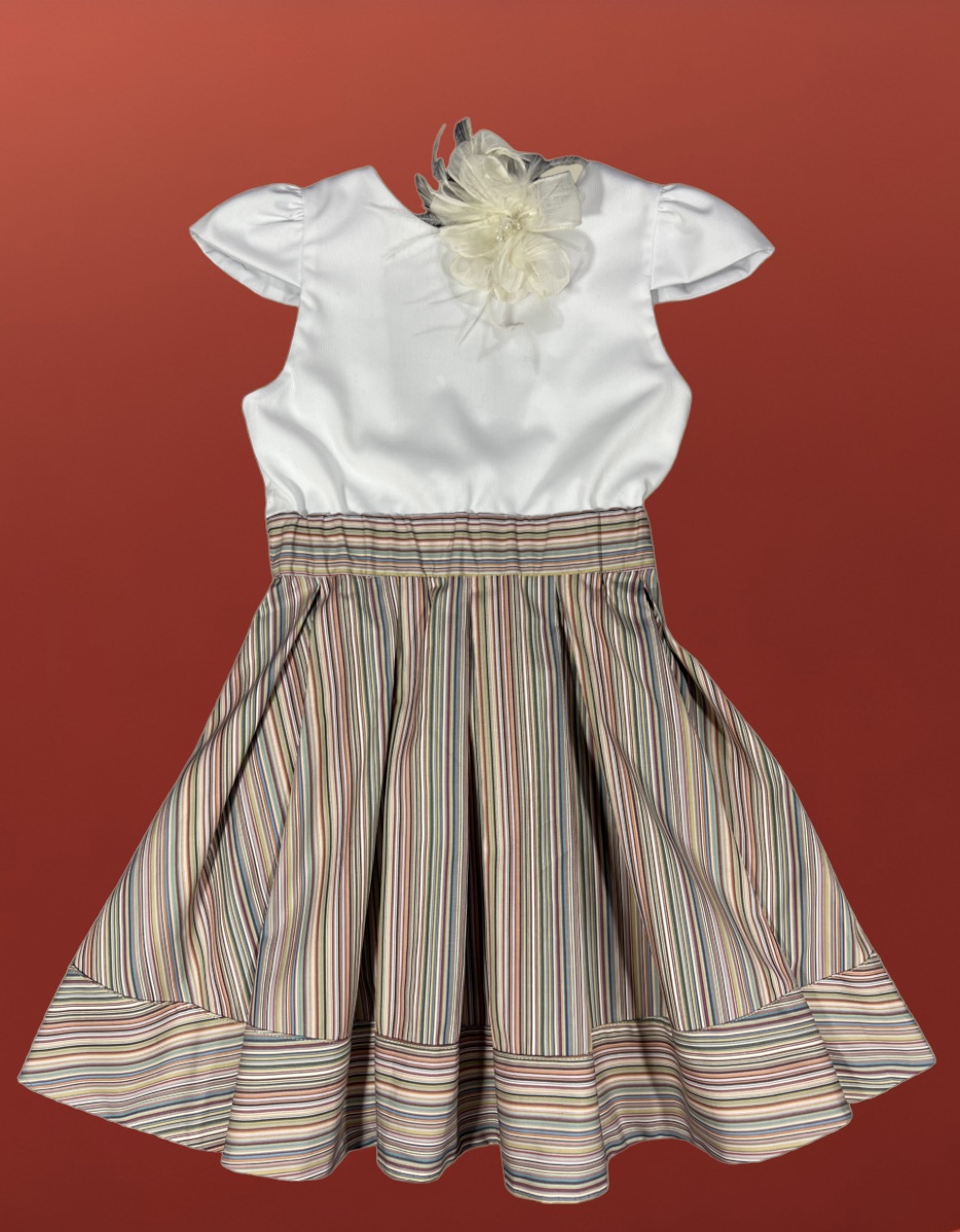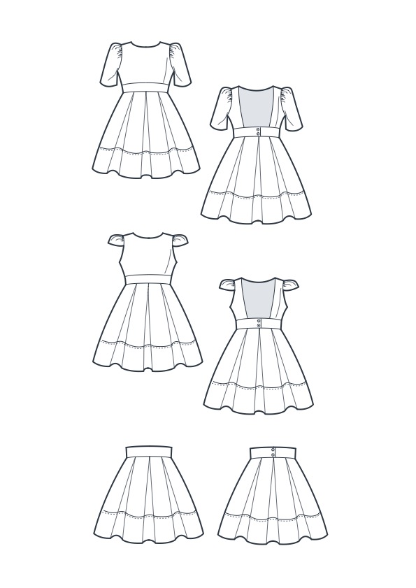 Romy est le patron de couture d’un robe dos nu de 2 ans à 14 ans, avec une jupe dans l’esprit New Look.