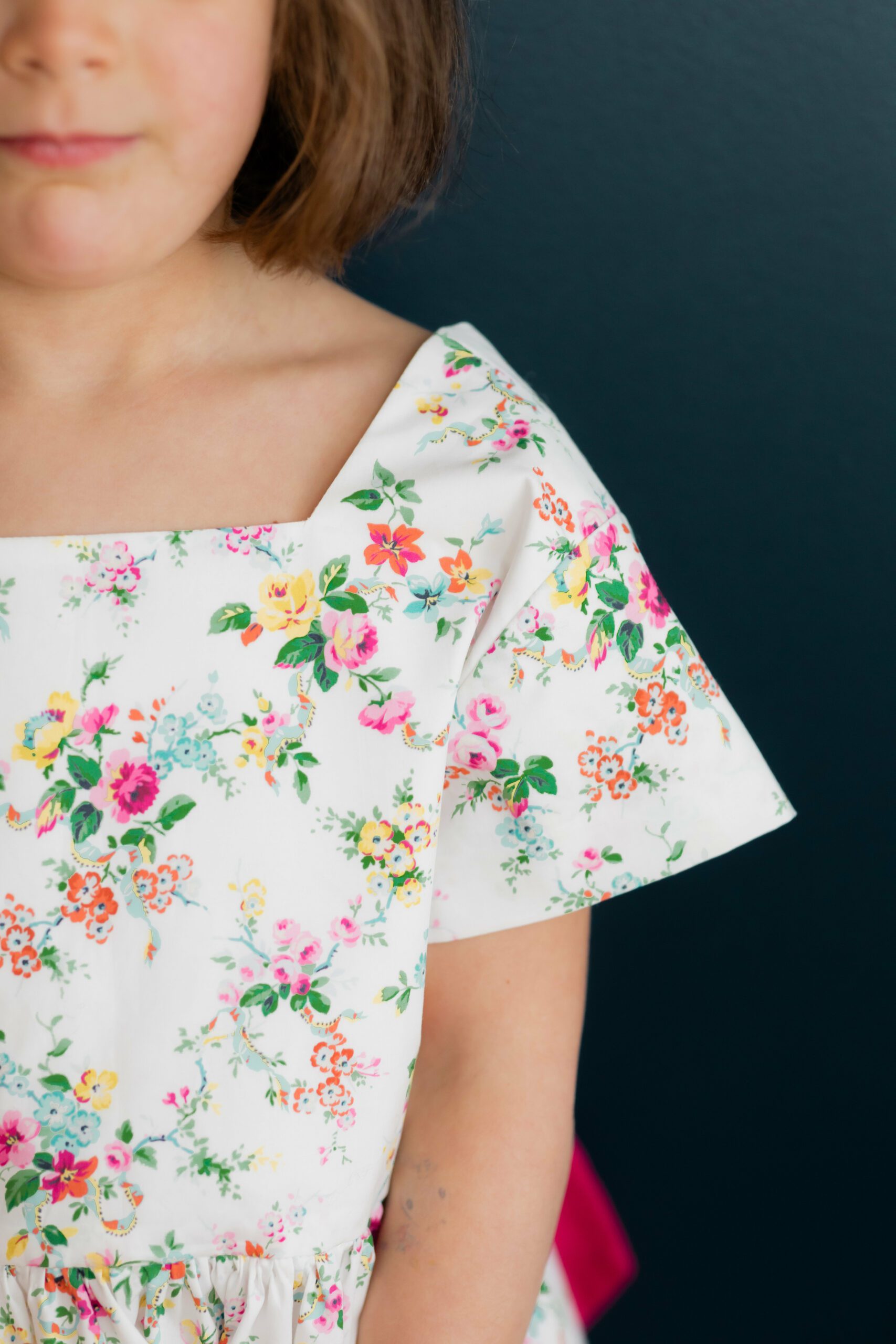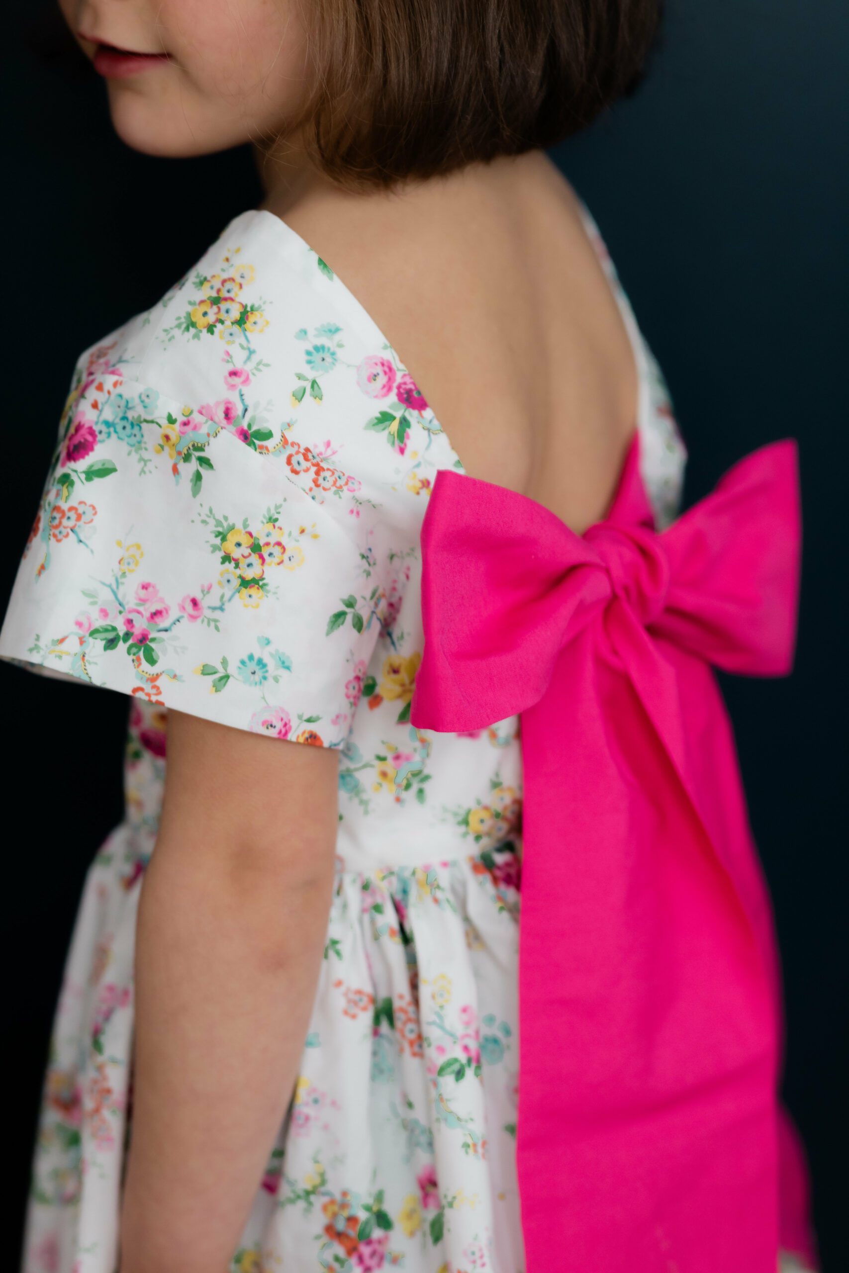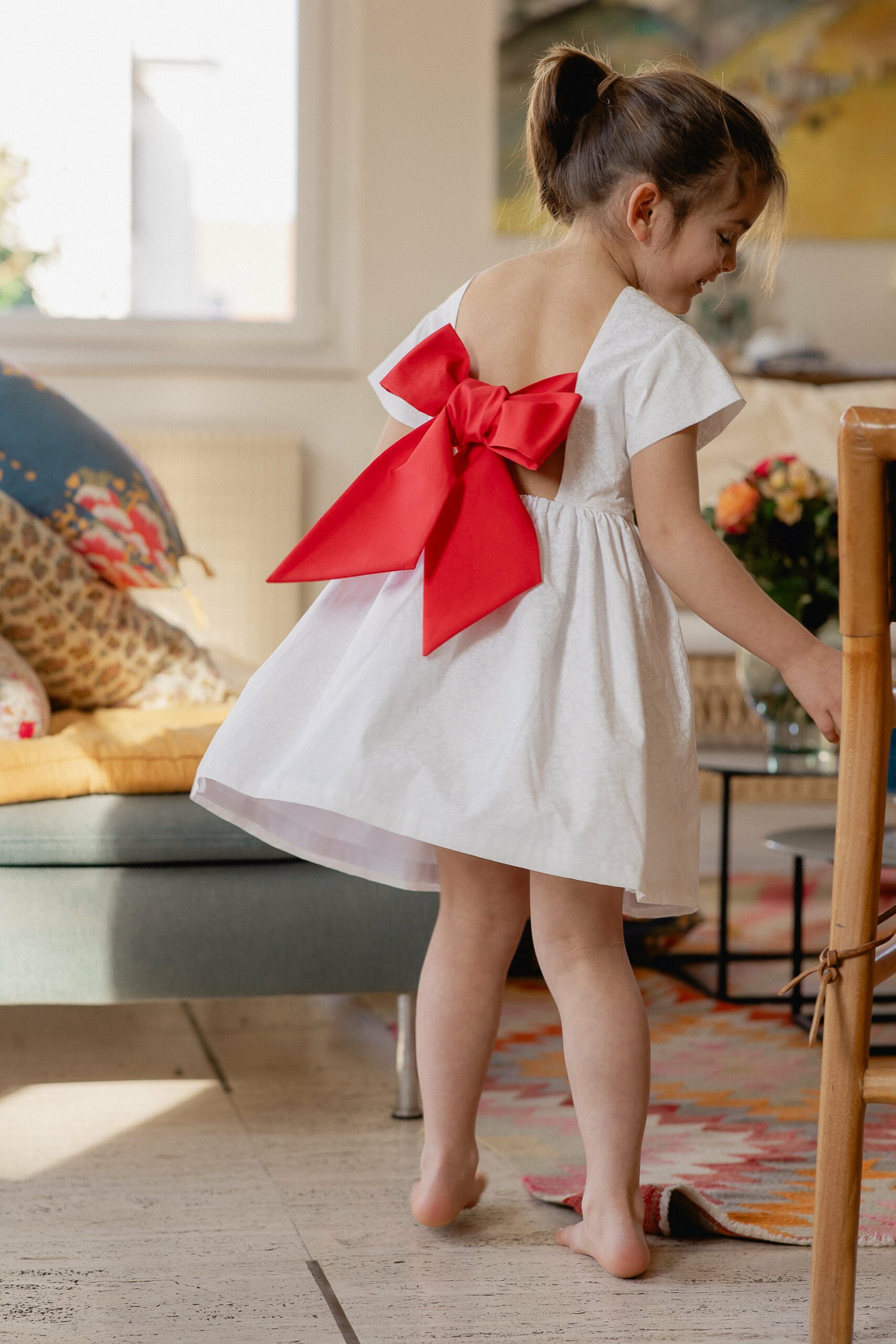 Eugénie est un patron de couture pensé pour les enfants de 2 à 14 ans, parfait pour les cérémonies comme pour le quotidien. Son dos nu noué par un large ruban, sa silhouette élégante et ses options de manches en font une pièce incontournable du vestiaire estival et chic.