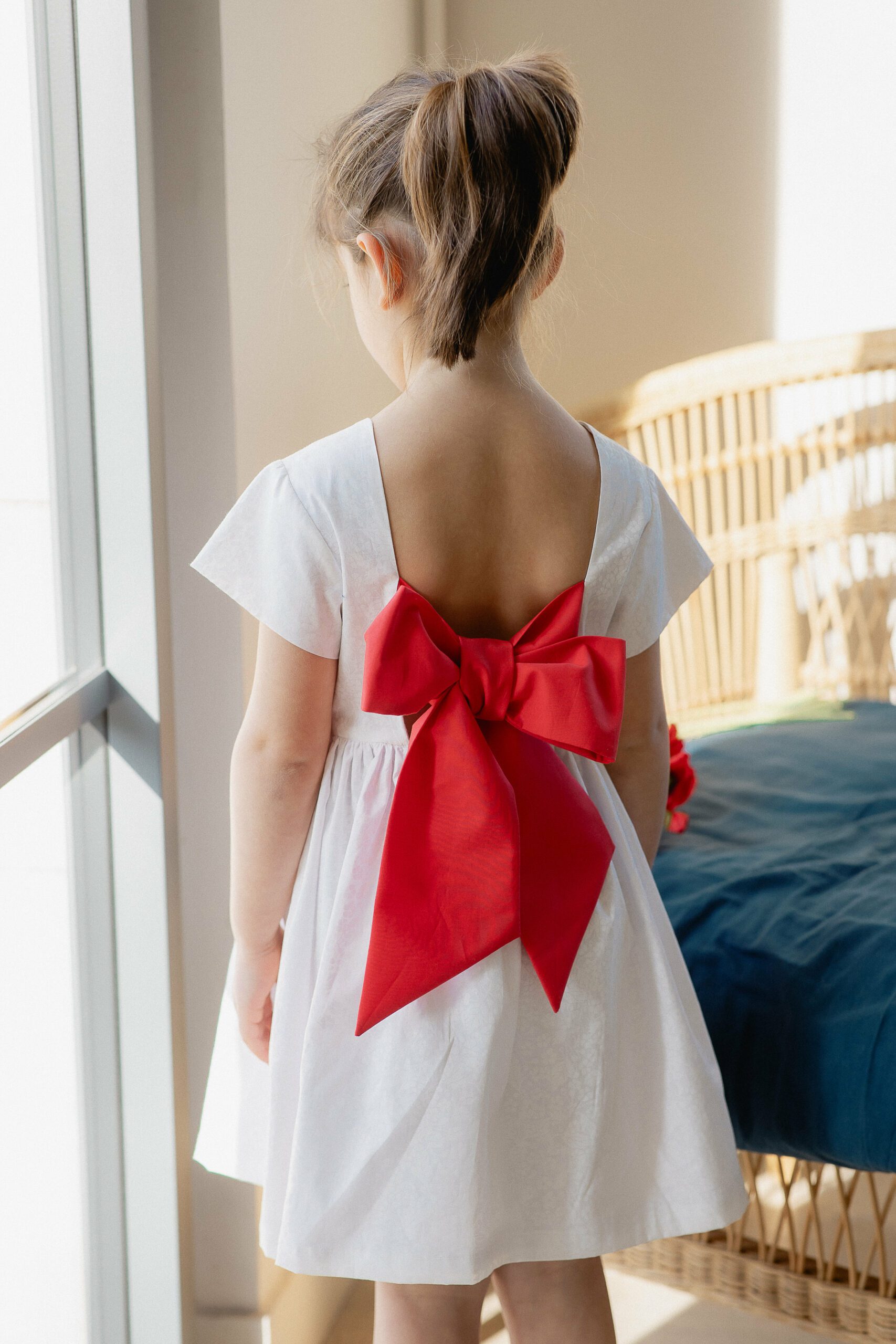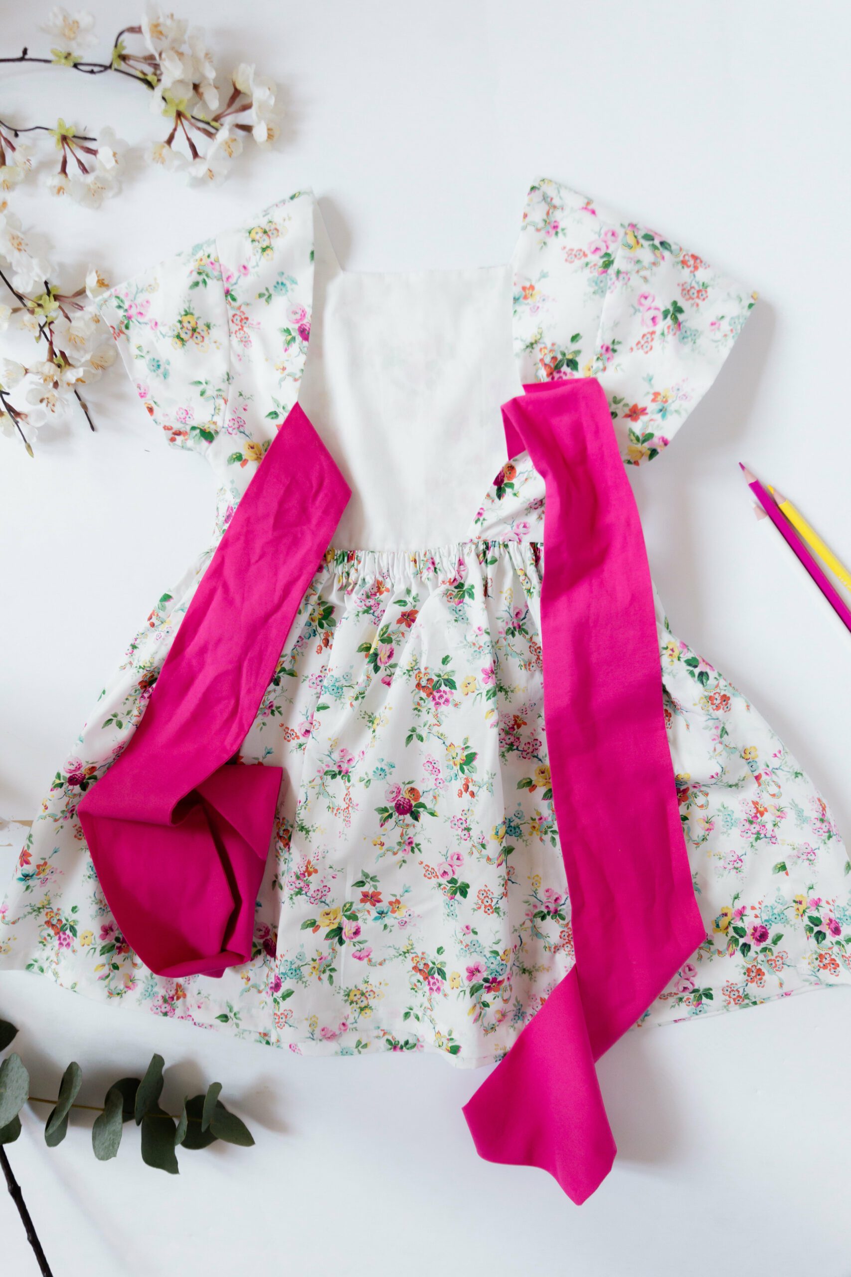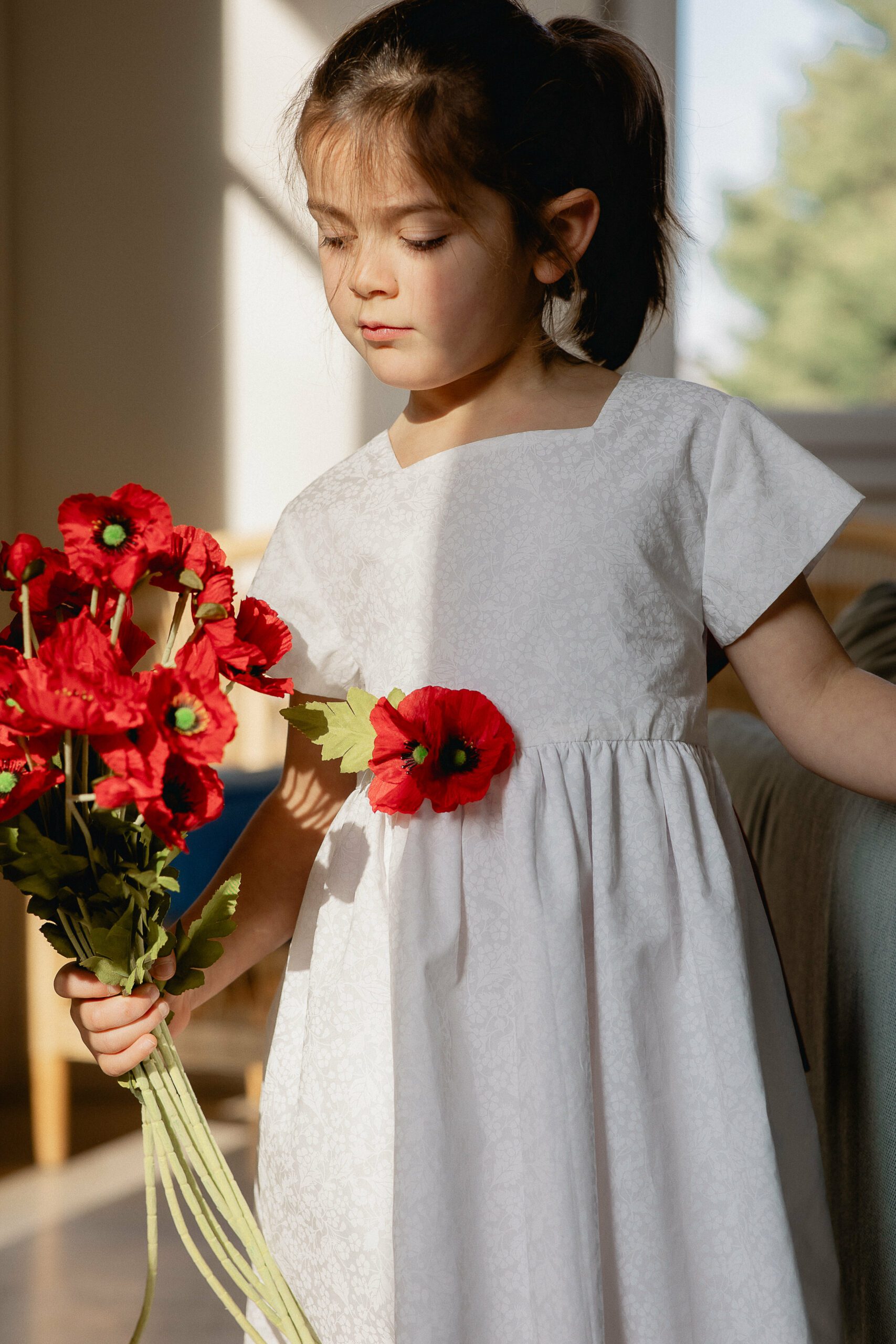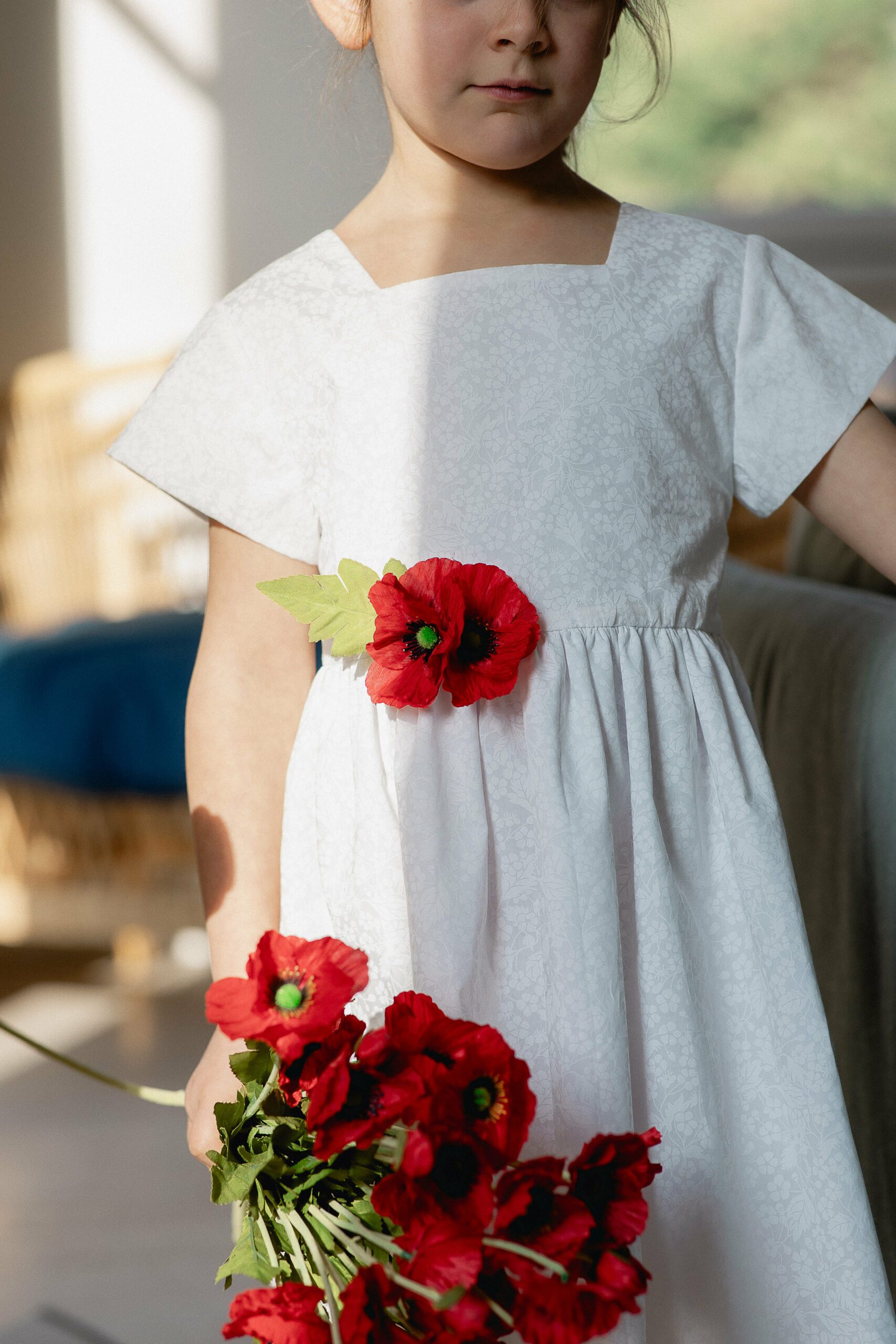 Eugénie est un patron de couture pensé pour les enfants de 2 à 14 ans, parfait pour les cérémonies comme pour le quotidien. Son dos nu noué par un large ruban, sa silhouette élégante et ses options de manches en font une pièce incontournable du vestiaire estival et chic.